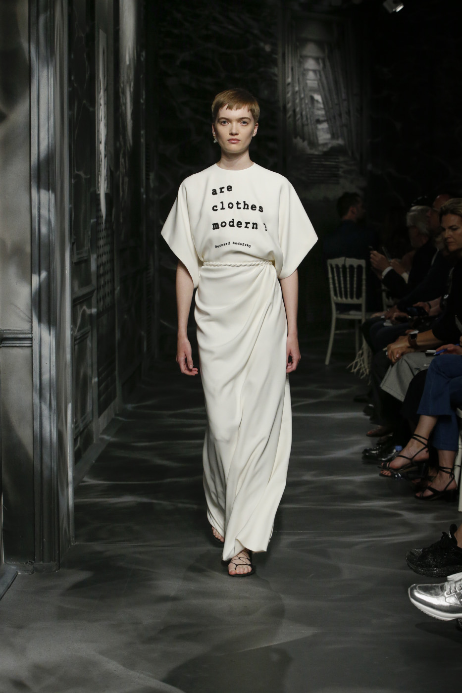For this Fall Winter 2019 Couture Collection, held at 30 Avenue Montaigne, the iconic address and birthplace of the founding couturier’s success, Maria Grazia Chiuri designed a collection inspired by caryatids, the poetic, statues of women that are at once marvelous columns — the founding pillars and bearers of society – as sublime ornaments that grace ancient temples certain Parisian façades with their streamlined curves. Almost entirely black, punctuated with rare shots of color, the Artistic Director’s creations reveal all their architectural power. A concept that implies starting with the fundamentals, the foundations of haute couture to better confront them with contemporary lifestyles. Thus, in keeping with the writings of the architect Bernard Rudofsky, this collection outlines an unexpected landscape that makes it possible to question notions of the body, clothes and habitat, space and time, nature and culture, and the flou and tailoring that constitute haute couture. This idea is further explored through the show’s set, a scenography by the feminist artist Penny Slinger. In a chimerical décor, she brings back to life all the women who, through their spirit and their beauty, have animated Dior’s hôtel particulier: the couturier’s beloved sister, Catherine Dior, his friends and muses, as well as the House’s petites mains and loyal clients.A magically intense fusion of femininity and architecture.