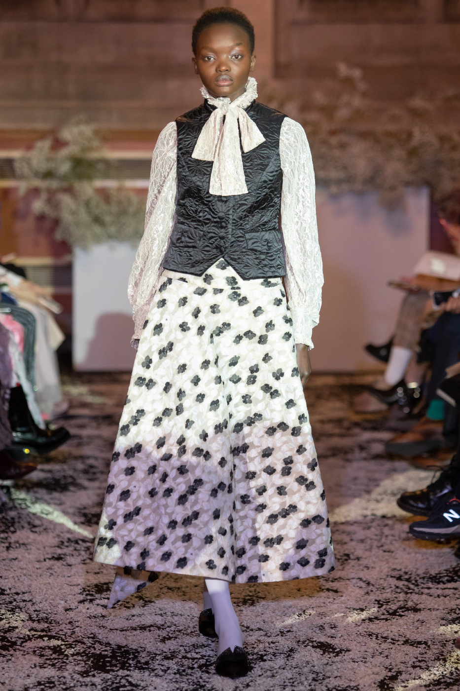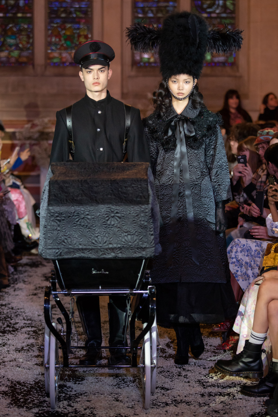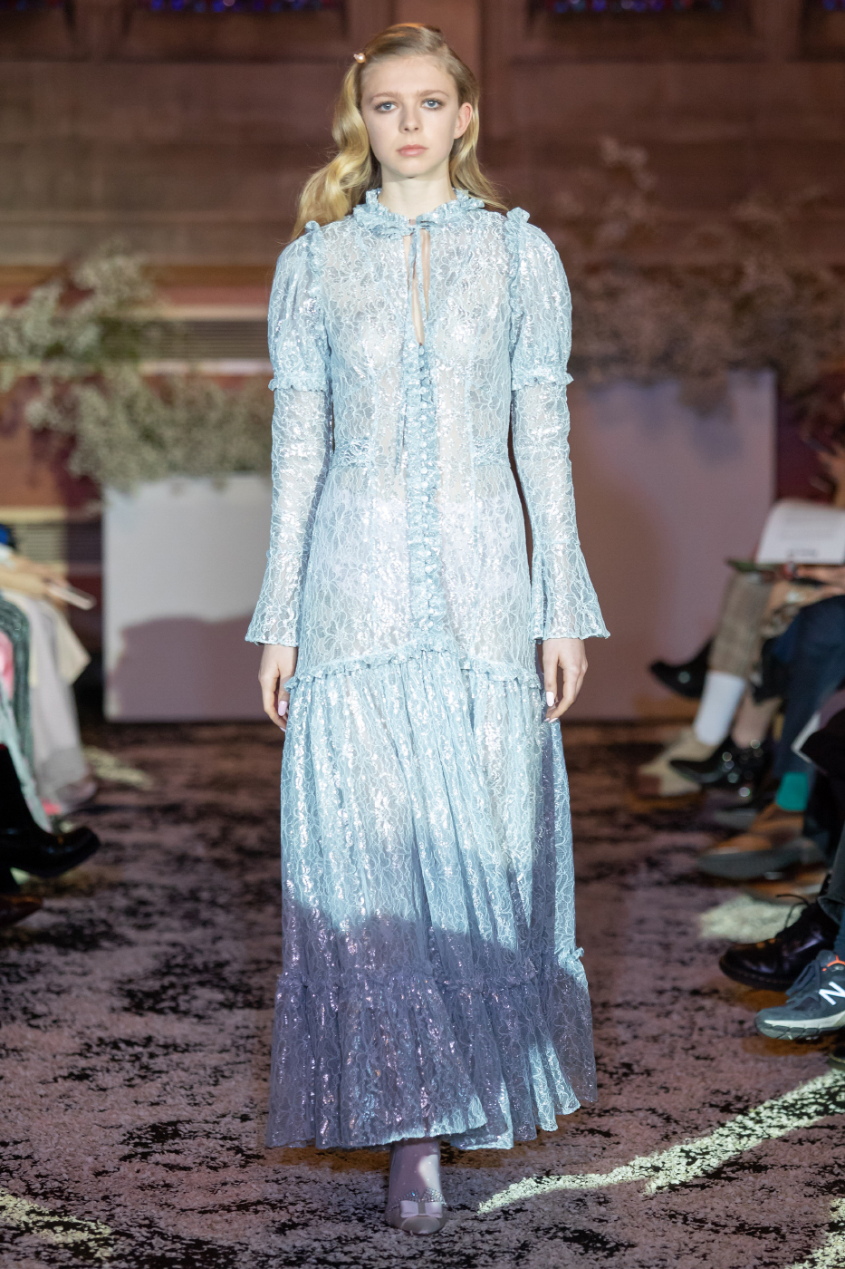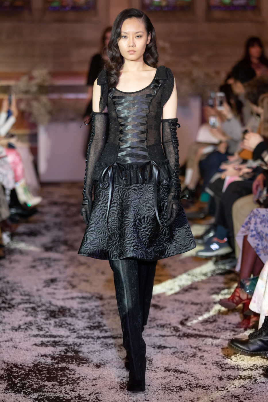Ryan LO explored the roots of kawaii by looking at the Japanese illustrator Rune Naito, whose 1960s illustrations of doe-eyed girls with their bouffant hair and retro frocks. By day, she’s cosy in double-faced quilted nylon coats and jackets with matching skirts. By afternoon tea, she’s in drop-waist lace dresses. By night, only a cocktail dress with a voluminous tiered skirt will do. He summons the cannon of prettiness and festoons everything with aplomb; corsages, pussy bows, feathers and frills. Matchy-matchy. Tone-on-tone. Not a Ginger Rogers step out of place.